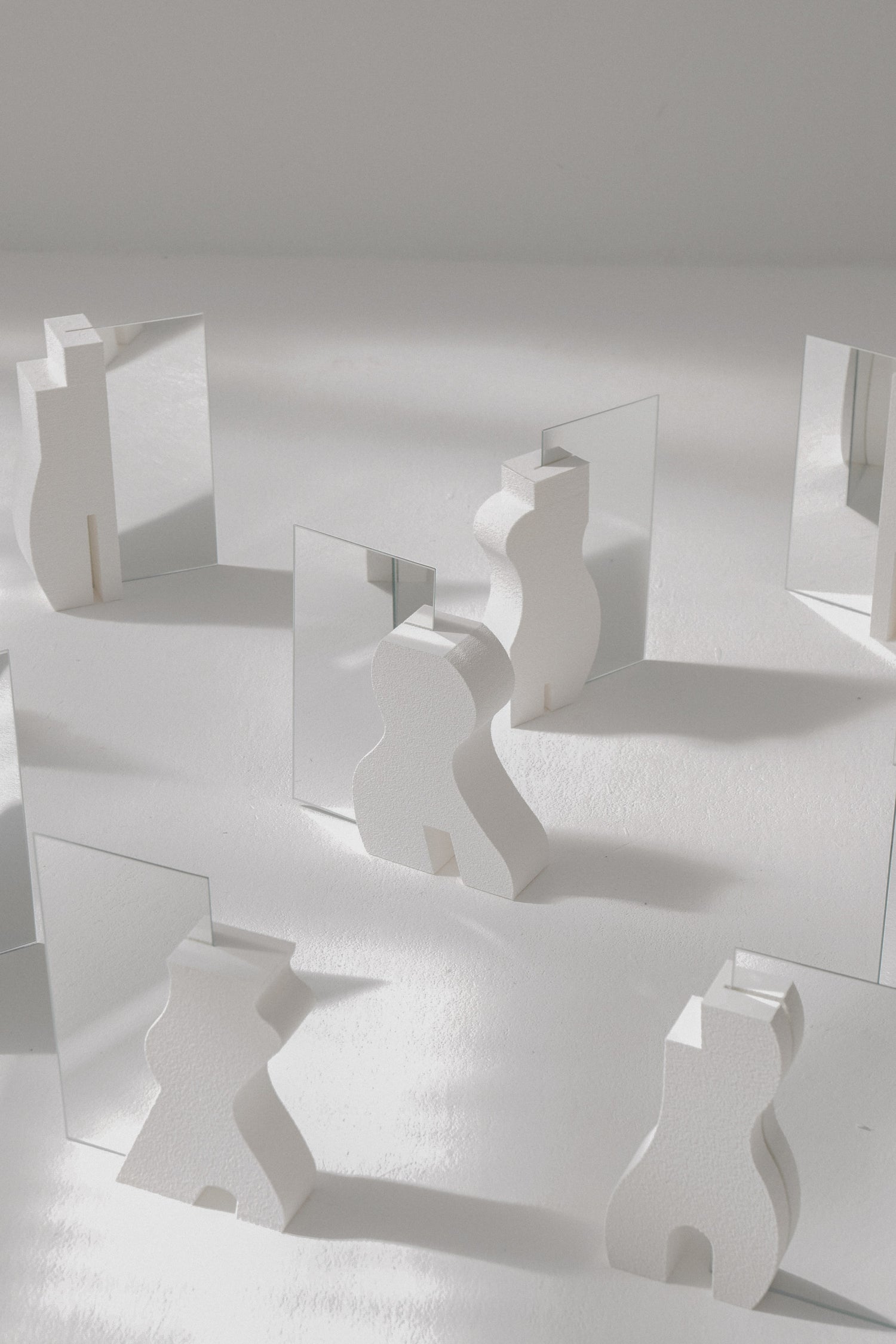 This project was envisioned by Eimear and the Allégorie Studio team to celebrate the beautiful shapes and curves of women. The totem mirrors reflect an element of softness and femininity yet aim to explore the contrast of normality, and celebrate the power and beauty of the body.