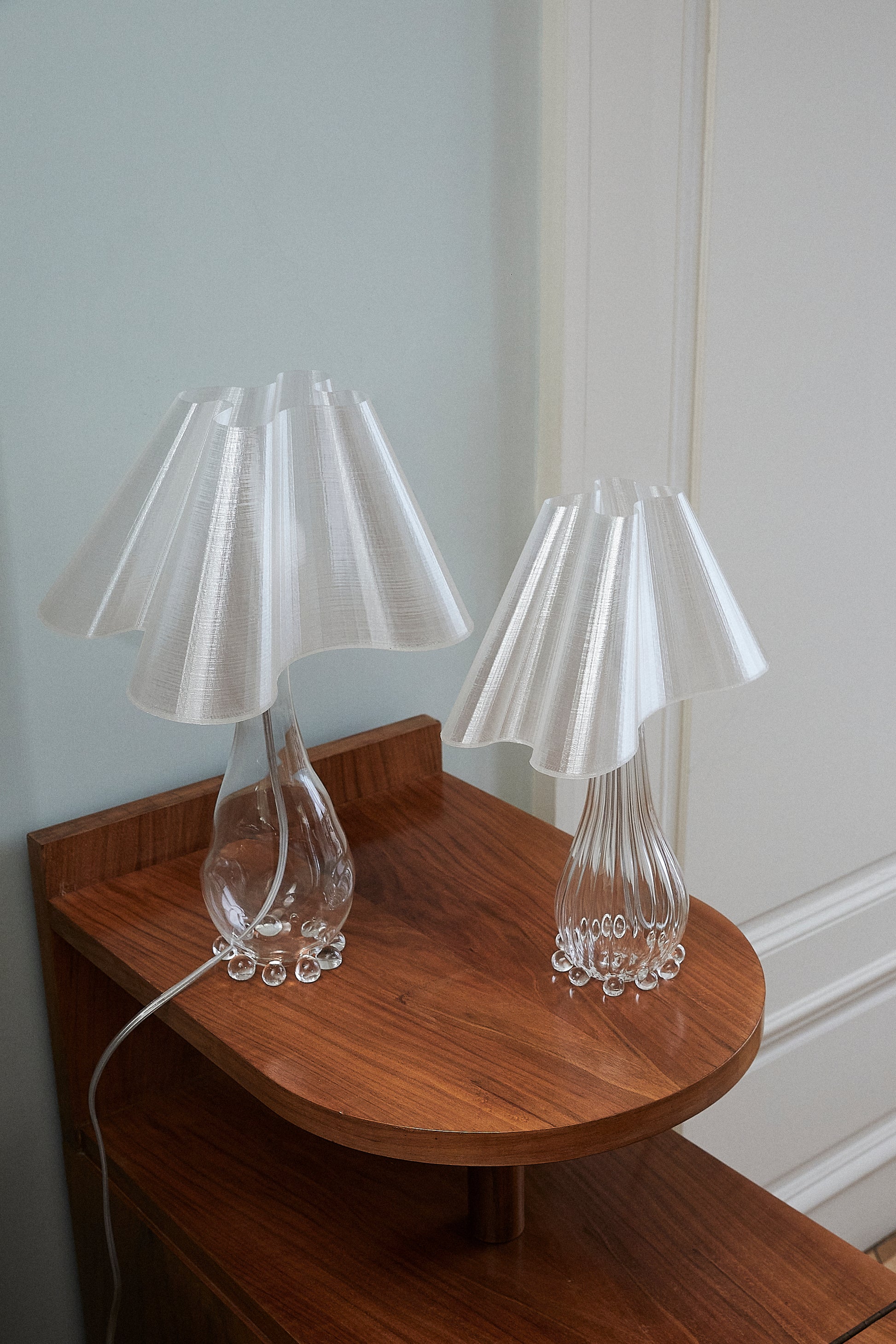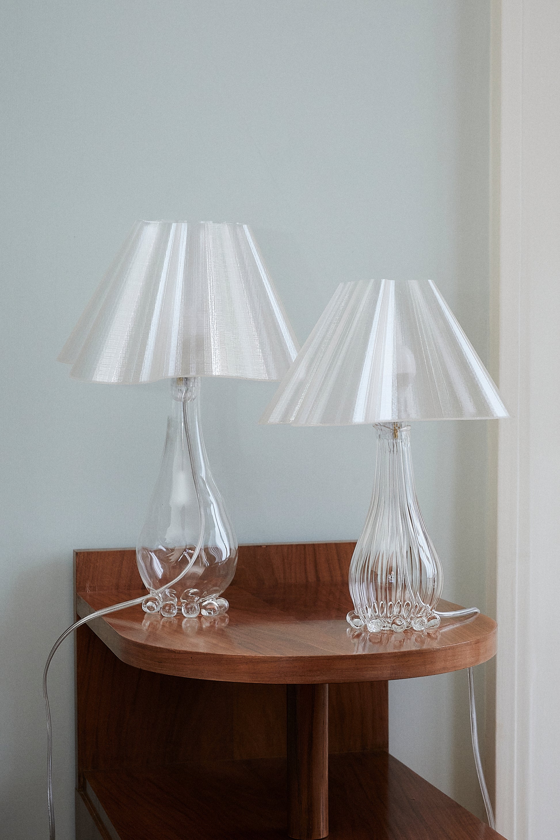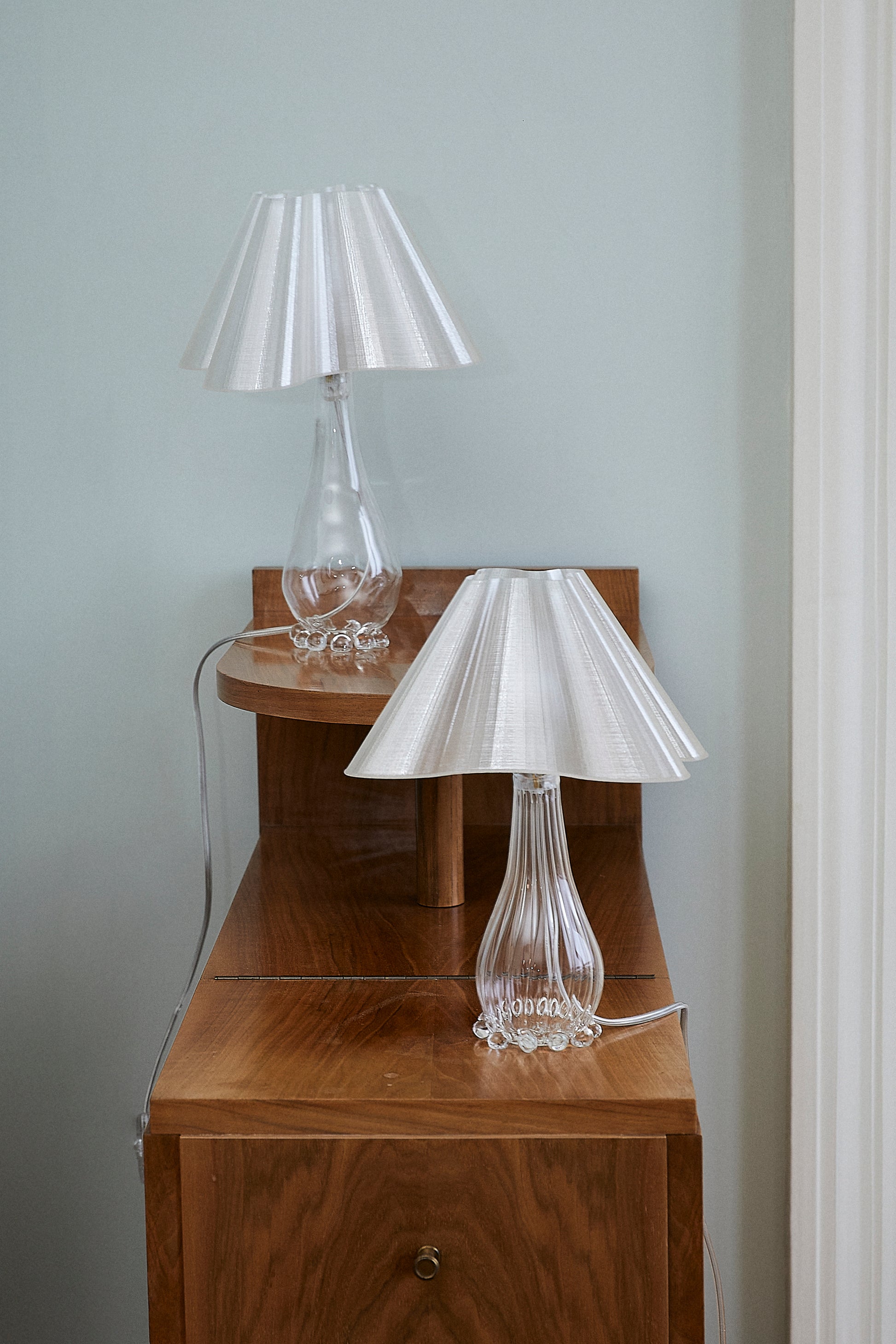 A dialogue between tradition and innovation, Les Précieuses Lamps combine the delicate, hand-blown glass base by Justine Ménard with the precision of a 3D-printed shade by Argot Studio. Crafted using techniques of both past and future, Les Précieuses Lamps add intrigue and character to any space whether they are paired together or styled as a singular statement piece. By contrasting materials, function and form - Les Précieuses become objects of movement, memory, and illumination.