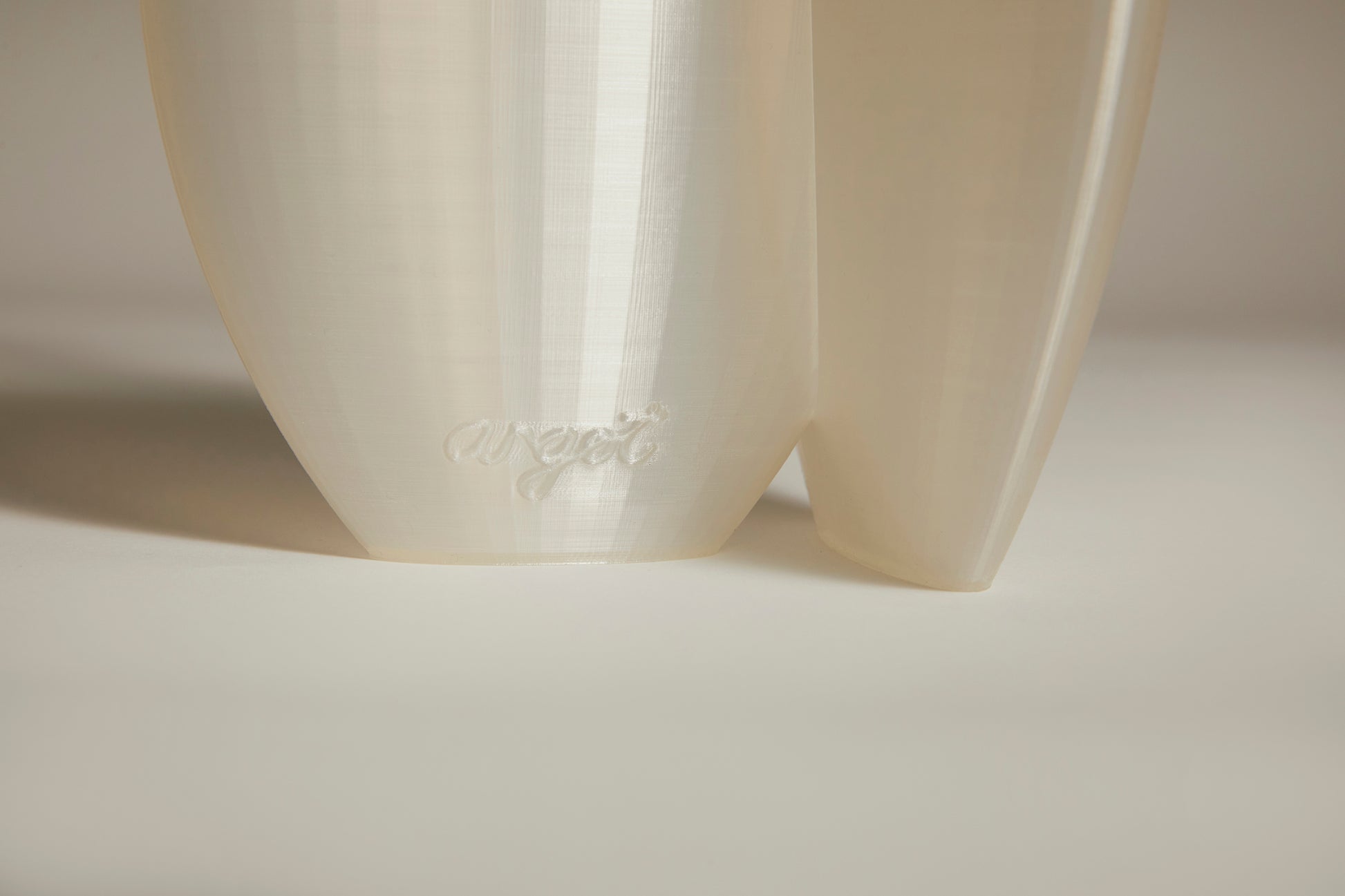 Our cult classic signature piece, the Double Vessel offers a visual illusion duo of two merged vases. The vessel will be a feature in any home offering a reimagined, contemporary take on the classic vases of Ancient Greece. The 3D printed layering gives a subtly reflective and shiny glaze to the finished product.