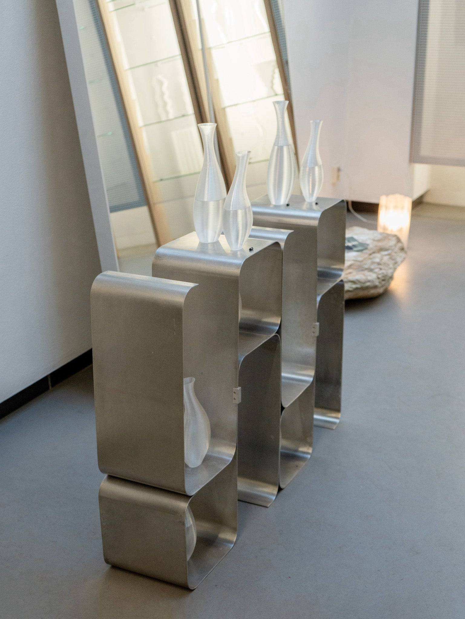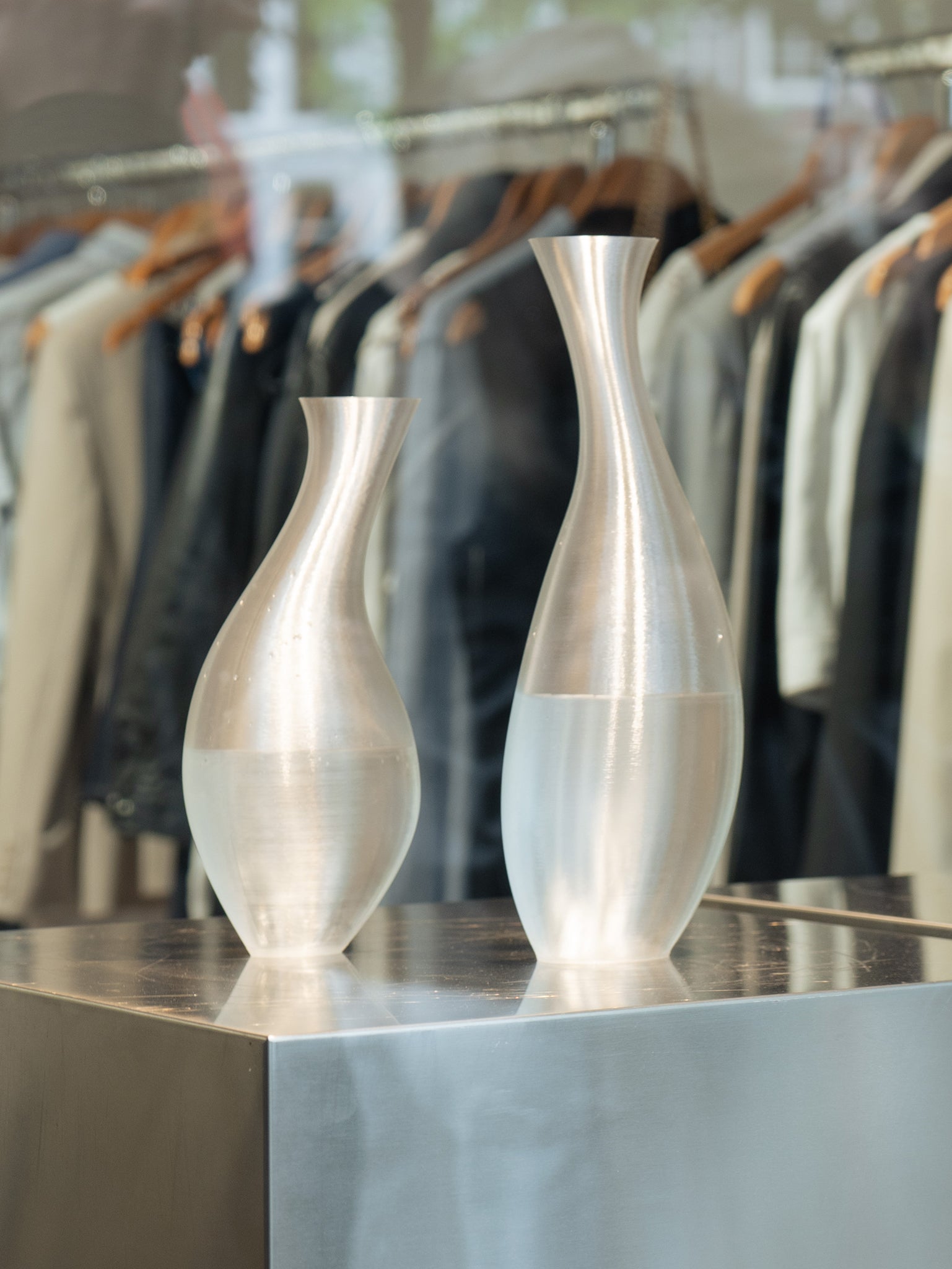 In collaboration with Ensō, Amsterdam-based curated vintage and upcycling boutique, we imagined the Ensō vases. Designed to evoke the meaning of ensō the Japanese word for circle, representing the beauty of imperfection and togetherness. In their asymmetric form and complimentary curves, the Ensō vases are intended to be both a sculptural object or a functional vase for your favourite flowers. Perfect on its own or complete as a duo, these vases will be a timeless addition to your decor.